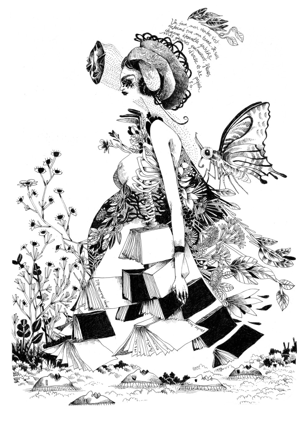 En zoomant sur la « coiffe » sur l’image vous pourrez lire les derniers vers de mon poème « Cercle de Vénus » extrait du recueil « Ventres, sons creux » à paraître bientôt donc.
