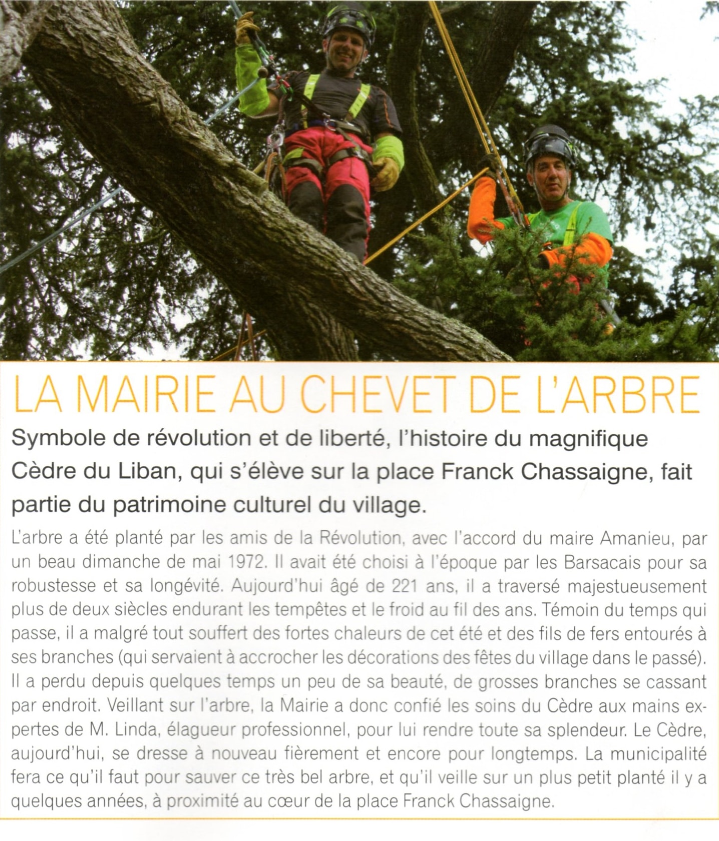 Dès mon arrivée à Barsac, mon coeur avait été ravi par cet arbre mais je ne savais pas grand chose de son histoire. En ouvrant les pages du numéro de novembre/décembre 2013 de La Vie Ensemble (journal municipal de Barsac), j’en ai découvert un petit bout et j’y suis encore plus attachée :