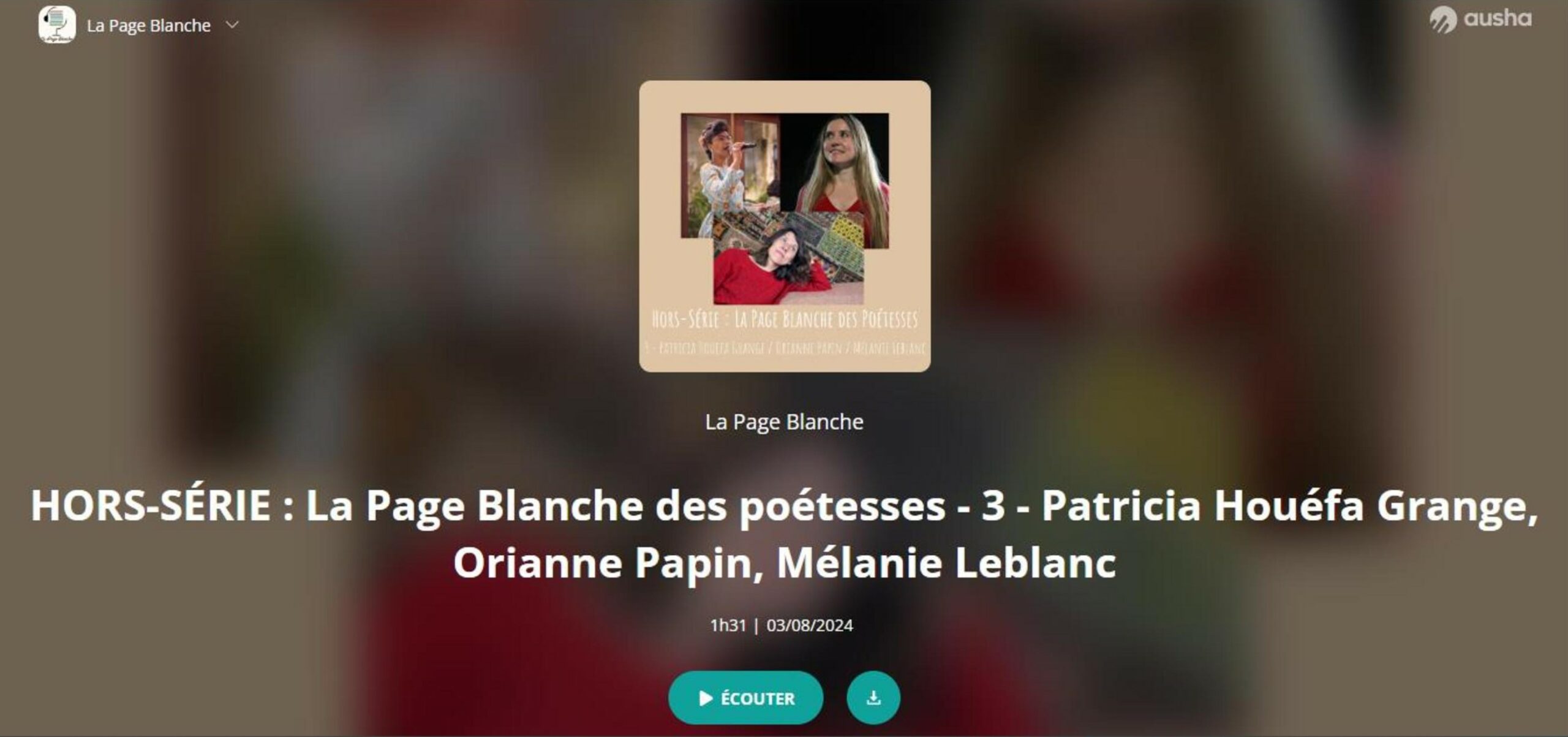 Ce fut une joie d’échanger avec Emilie Deseliène, autour du processus créatif en poésie, dans le cadre des Hors-série d’été de son podcast « La Page Blanche ».
