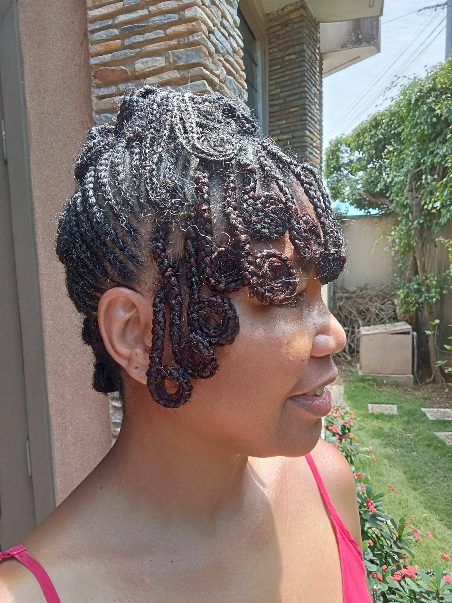 Photos : La coiffure que je porte depuis quelques jours, tissée par Solange, ma coiffeuse attitrée de Cotonou.