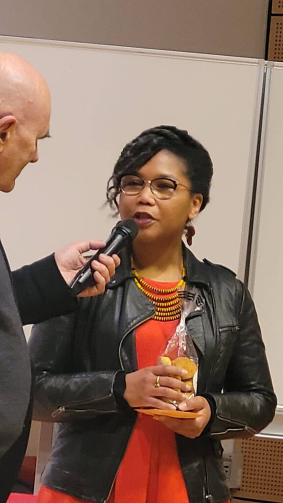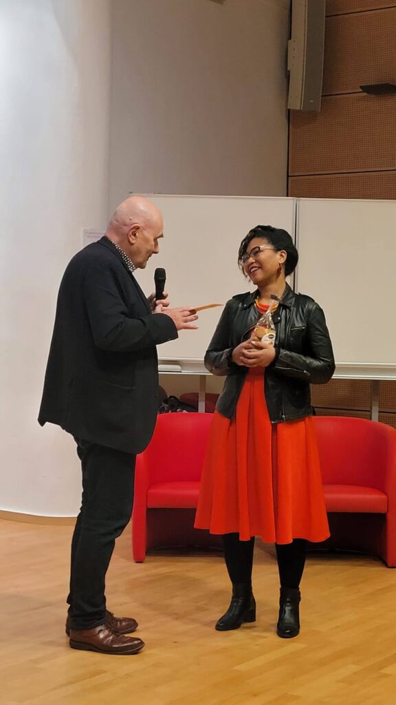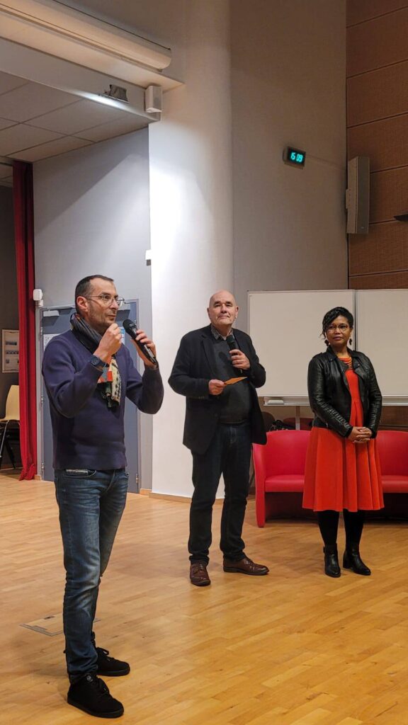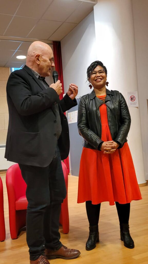 C’était le 7 février dernier à l’auditorium du lycée Ernest Renan de Saint-Brieuc, avec Jean Lebrun et les membres de l’association Lire à Saint-Brieuc, les enseignant.e.s (professeur.e.s de lettres et de théâtre) des lycées Ernest Renan et Saint-Charles ainsi que trois classes de Première de ces mêmes lycées qui ont voté dans le cadre de ce Prix qu’iels ont décidé de décerner à mon recueil Métisse, et alors ?