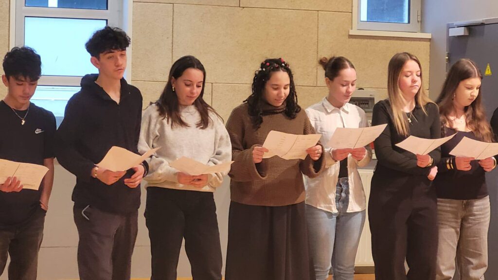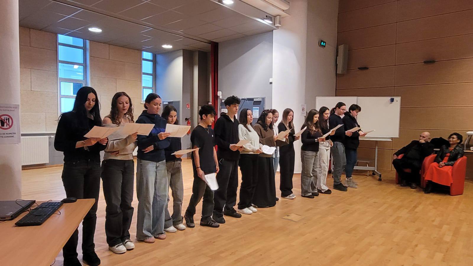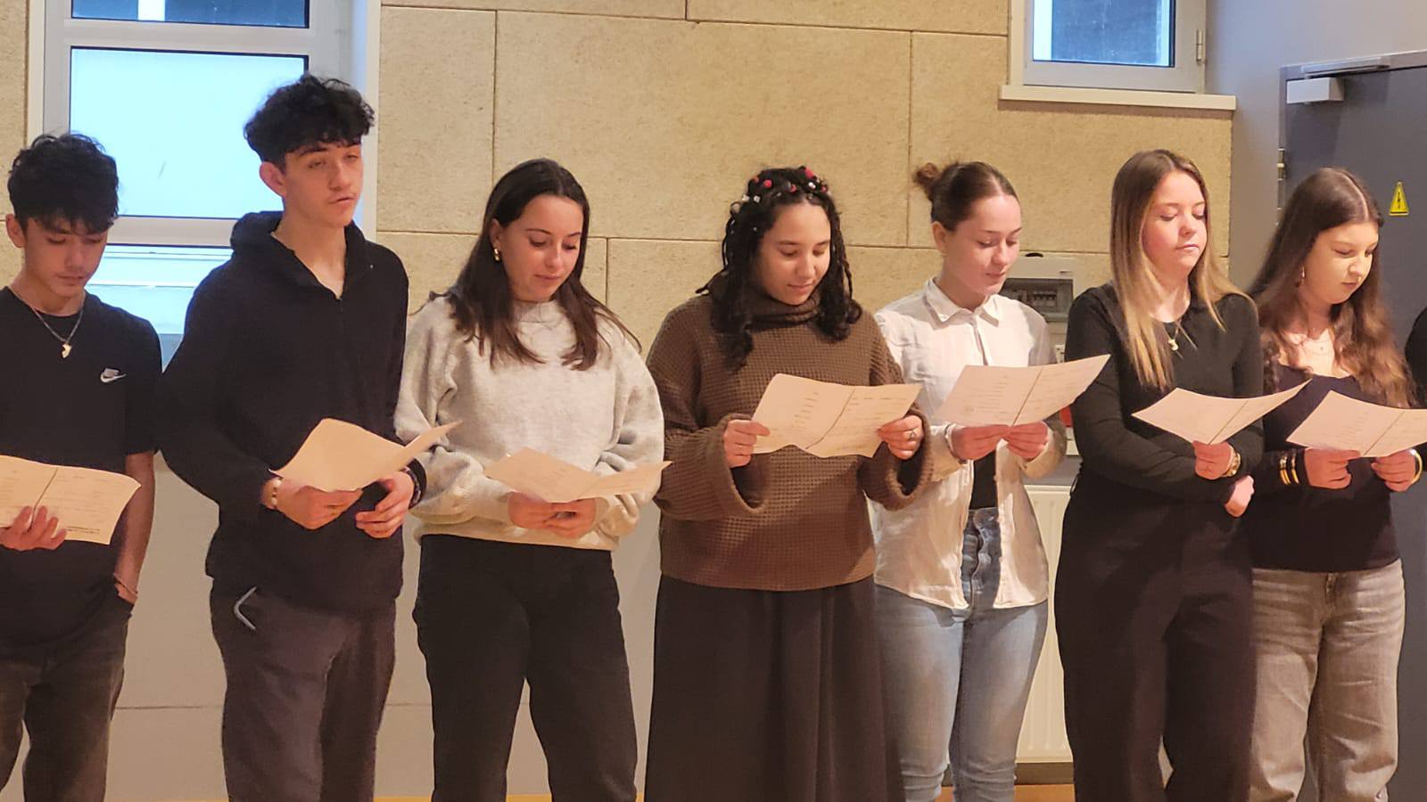 Moment d’émotion quand ces classes sont passées l’une après l’autre pour interpréter plusieurs des textes du recueil qui ont été mis en voix et en espace. Je leur ai également offert la déclamation d’un poème.