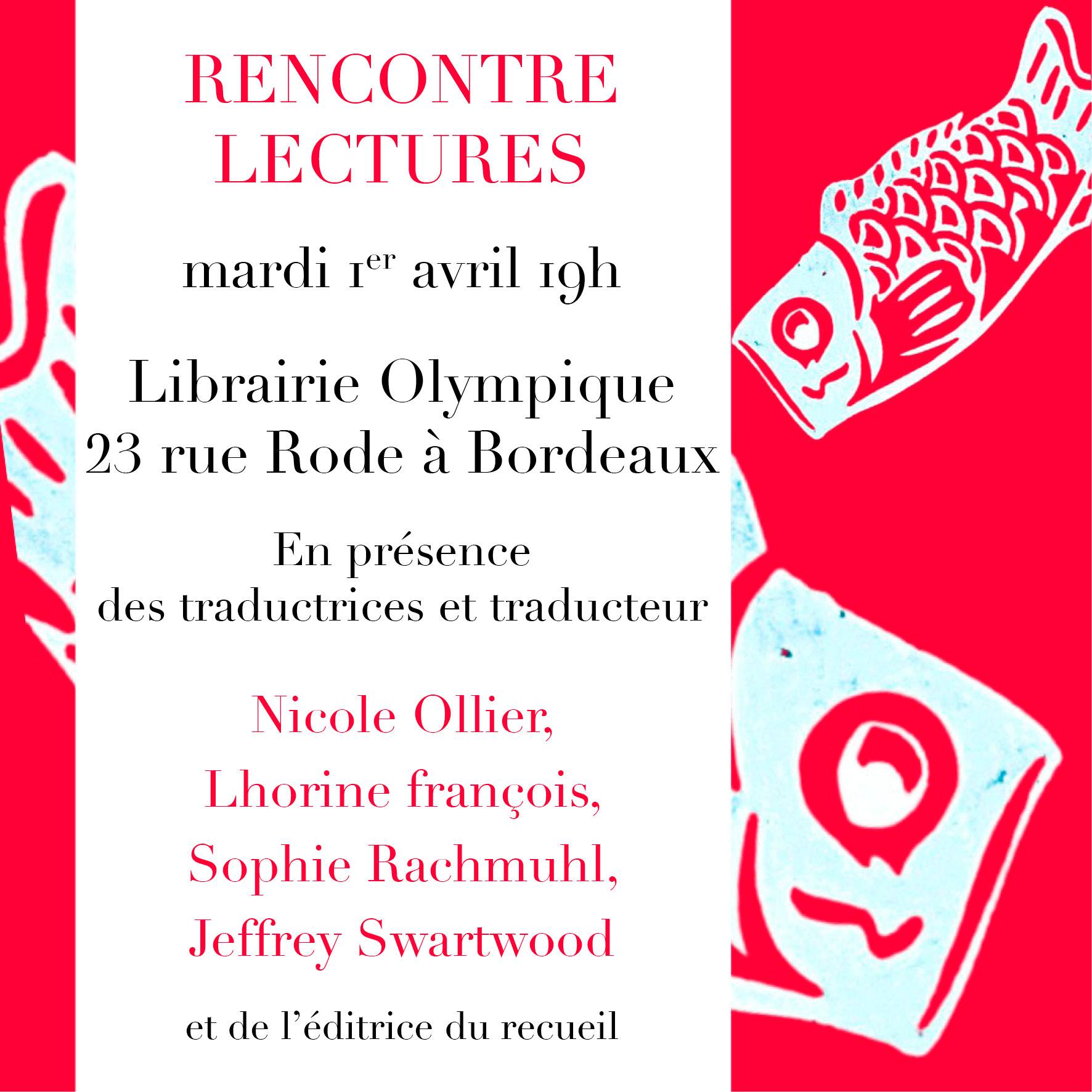 La soirée de lancement aura lieu le 1er avril à 19h à la Librairie Olympique à Bordeaux :