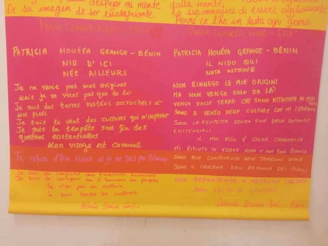 Comme je vous le disais il y a quelques semaines, dans le cadre du projet « Rimad’origine » de l’artiste Elisa Vladilo, ma compatriote béninoise, Letonde Hermine Gbedo installée en Italie, a partagé quelques vers de mon poème Nid d’ici Née ailleurs (extrait de mon recueil Métisse, et alors ? (paru dans la collection L’Iconopop des Éditions de L’Iconoclaste en 2023) en français et dans sa traduction en italien.