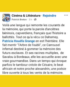 Patrick Breton a été mon professeur de lettres et de l’être sur plusieurs années entre le collège et le lycée au Lycée français de Cotonou EFE Montaigne Cotonou.